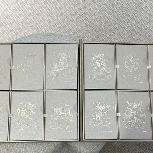 星座をテーマにした初の限定版パラディセット(ミニチュア12個入り)精巧に作られたミニデキャンタには、きらめく星々が星座を表すユニークな金メッキの星座が描かれており、占星術愛好家や鑑定家にとって意義深いコレクターズアイテムとなっています。トラベルリテールアジア限定のこの限定版は、輝く金色のボックスに収められ、各デキャンタは対応する星座のシンボルで飾られた個別のギフトボックスに収められた貴重なコレクションです。